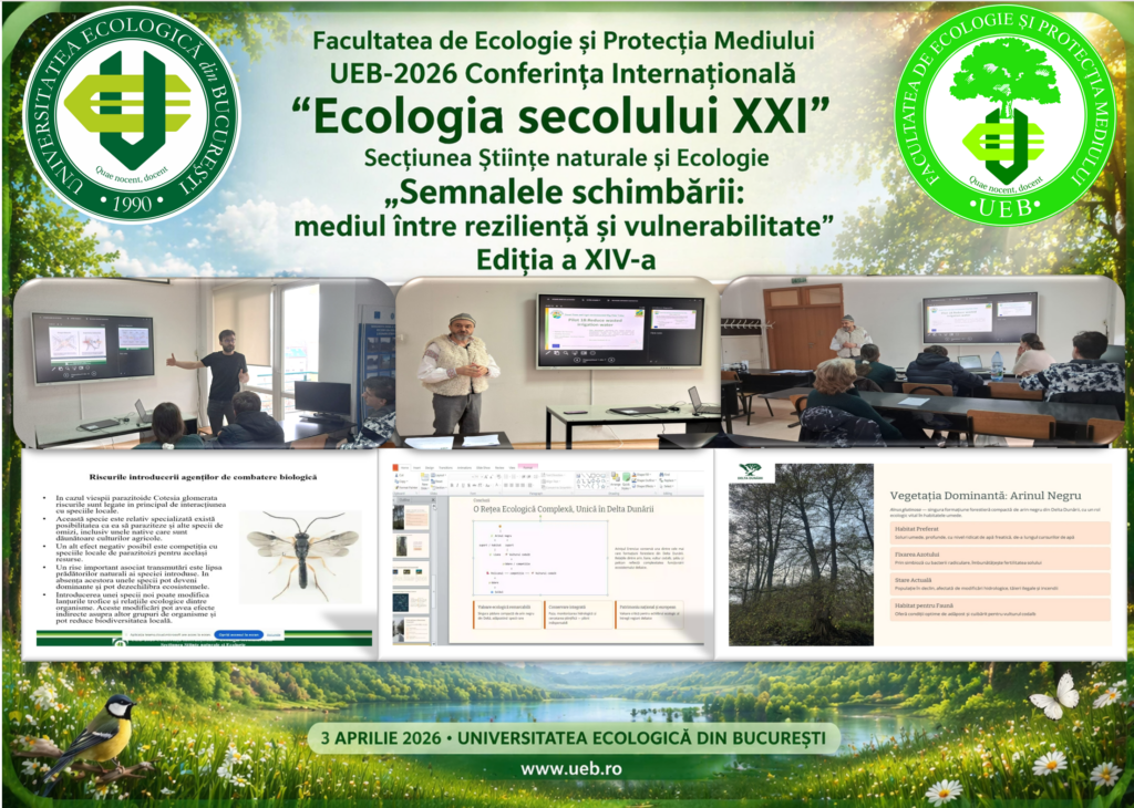 Va invitam sa participati joi, 3 aprilie 2025, la Sesiunea de comunicari stiintifice din cadrul Facultatii de Ecologie si Protectia Mediului.